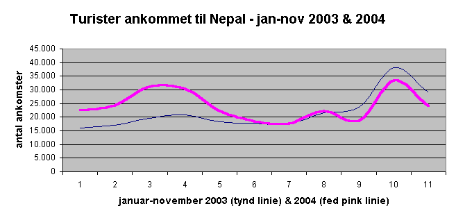 Men forårsmånederne fik ellers optimismen til at stige i Nepals turistindustri, efter en stigning på omkring 50%(!) i forhold til 2003!.